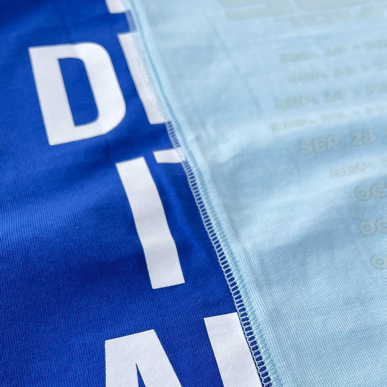 フットボールジャージをモチーフにしたツアーTシャツで、ポイントは左中右で切り替えが施されているところ。