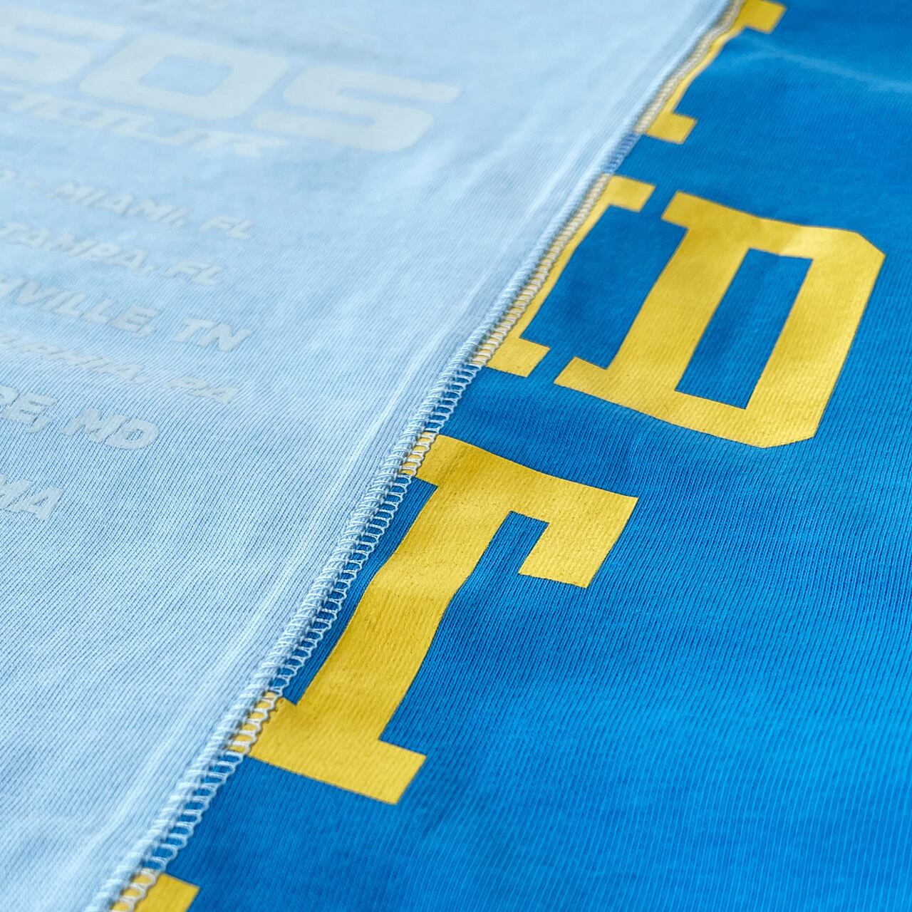 それとバックプリントの真ん中にはツアーが行われた各都市名が記載されており、ツアーTシャツらしい仕上がりに。